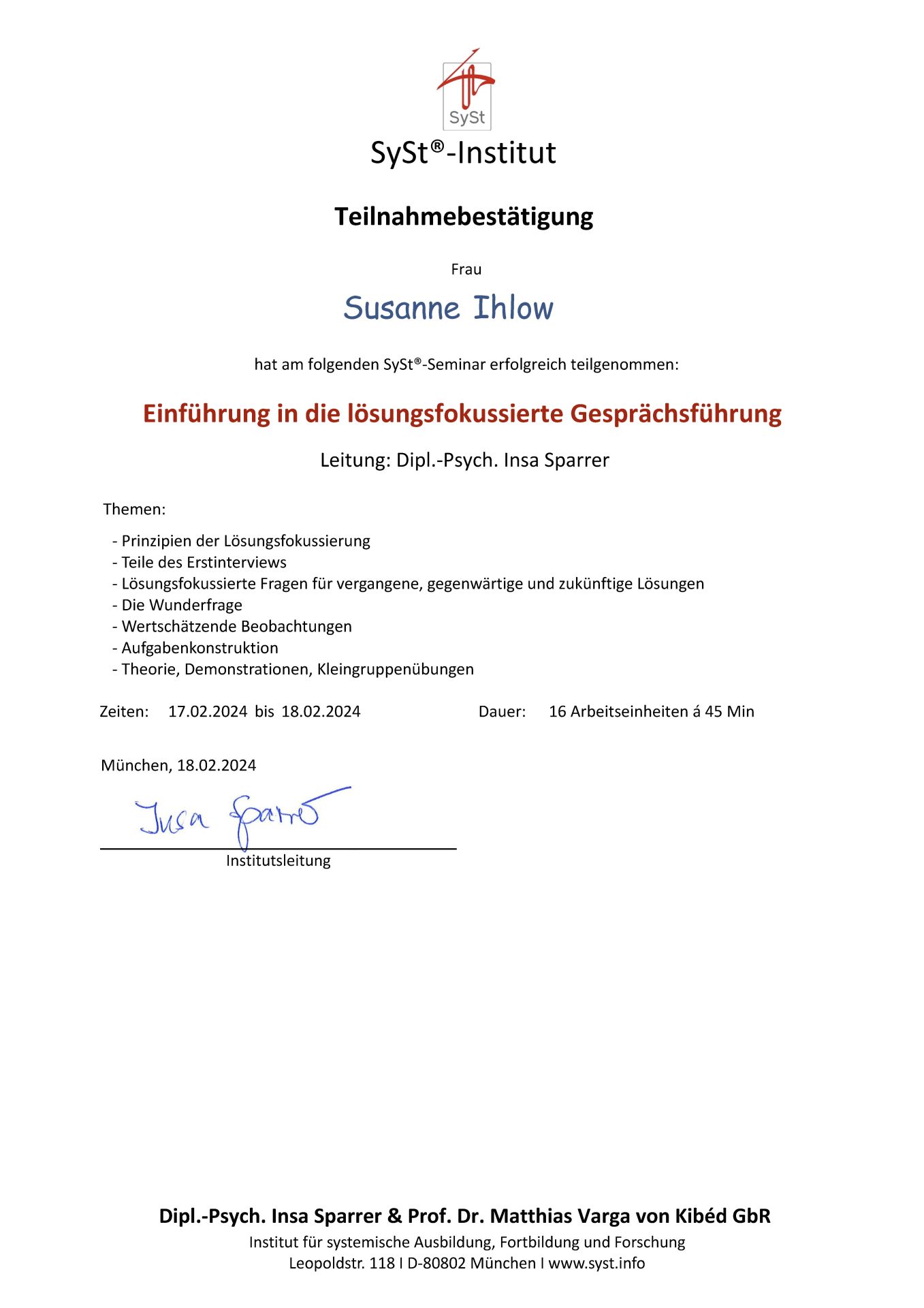 Teilnahmebestätigung